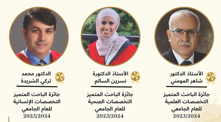 مُنحت جائزة الباحث المتميز للعام الجامعي 2023/2024 لكل من: