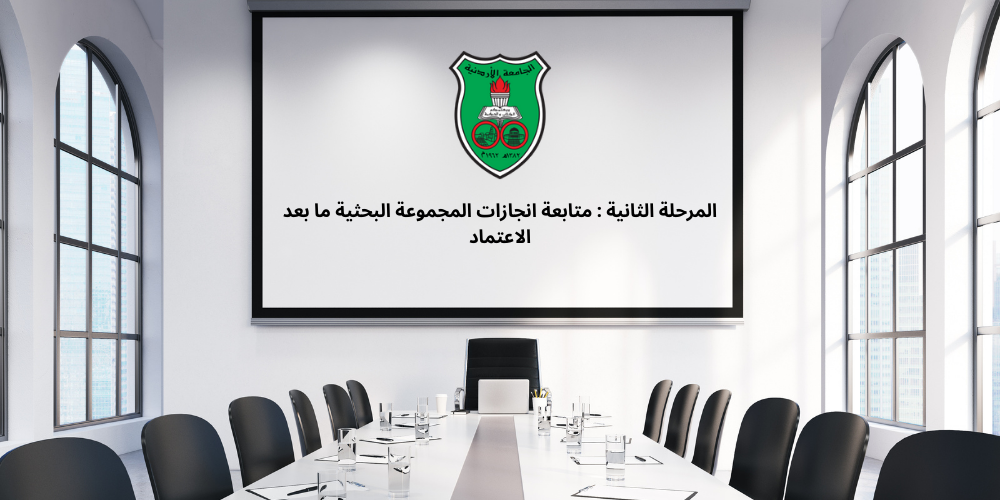 بعد اعتماد وإشهار المجموعة البحثية في مختلف القنوات الإعلامية الرسمية للجامعة الأردنية ب 6 أشهر، وحرصًا من الجامعة على ضمان فاعلية هذه المجموعات في إنتاج علمي نوعي مؤثر يخدم القطاعات المعنية، ستقوم لجنة اعتماد المجموعات البحثية في الجامعة بعقد اجتماعات مع كل مجموعة تم إشهارها، وذلك للتحقق من الأمور التالية: