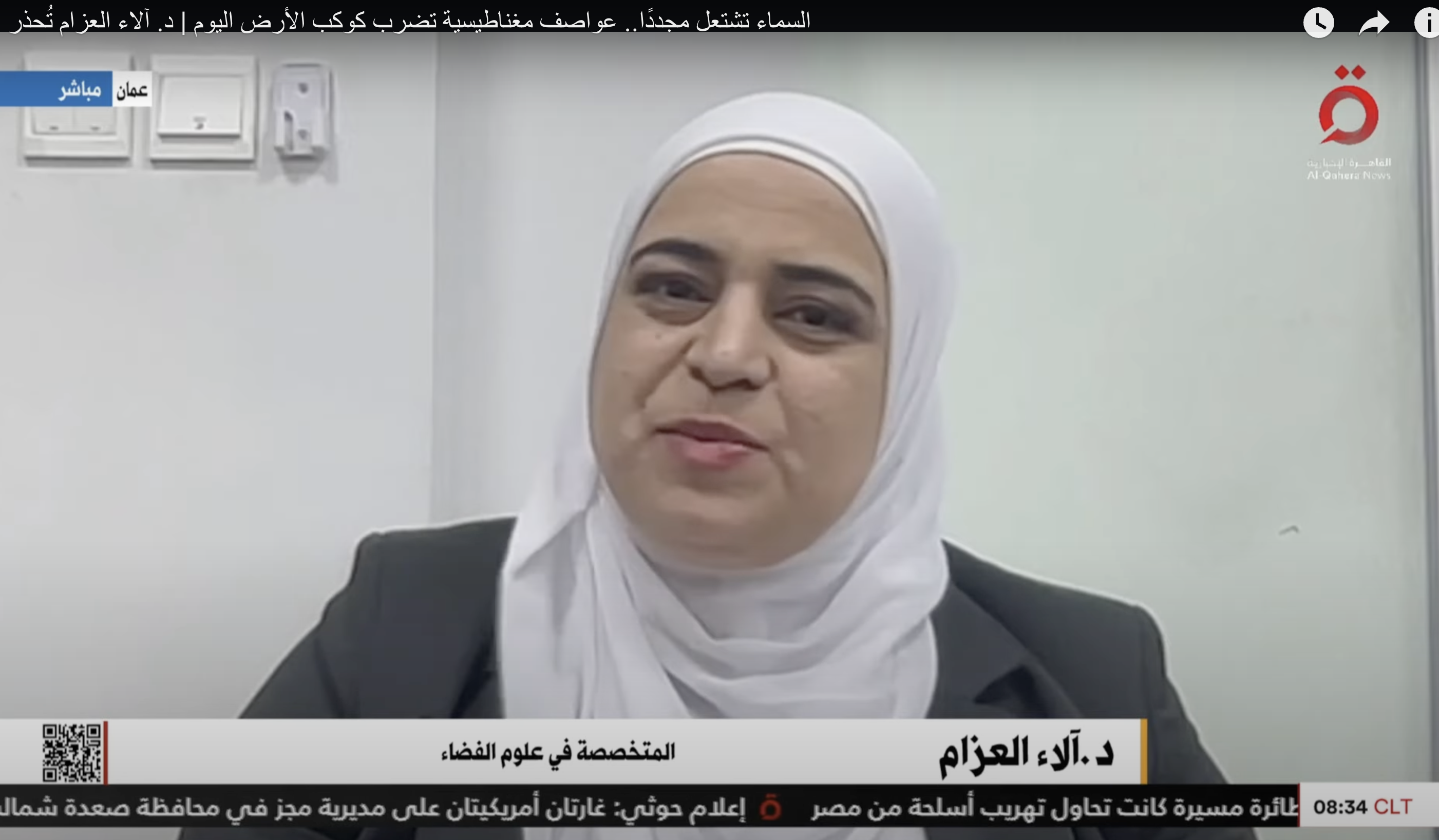 Dr. Alaa Azzam warns of impending solar storms in an interview on Al-Qahera News Channel.