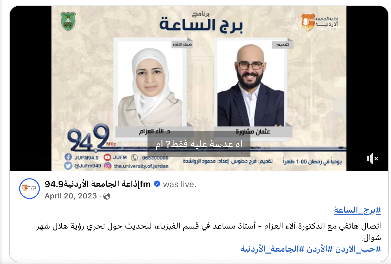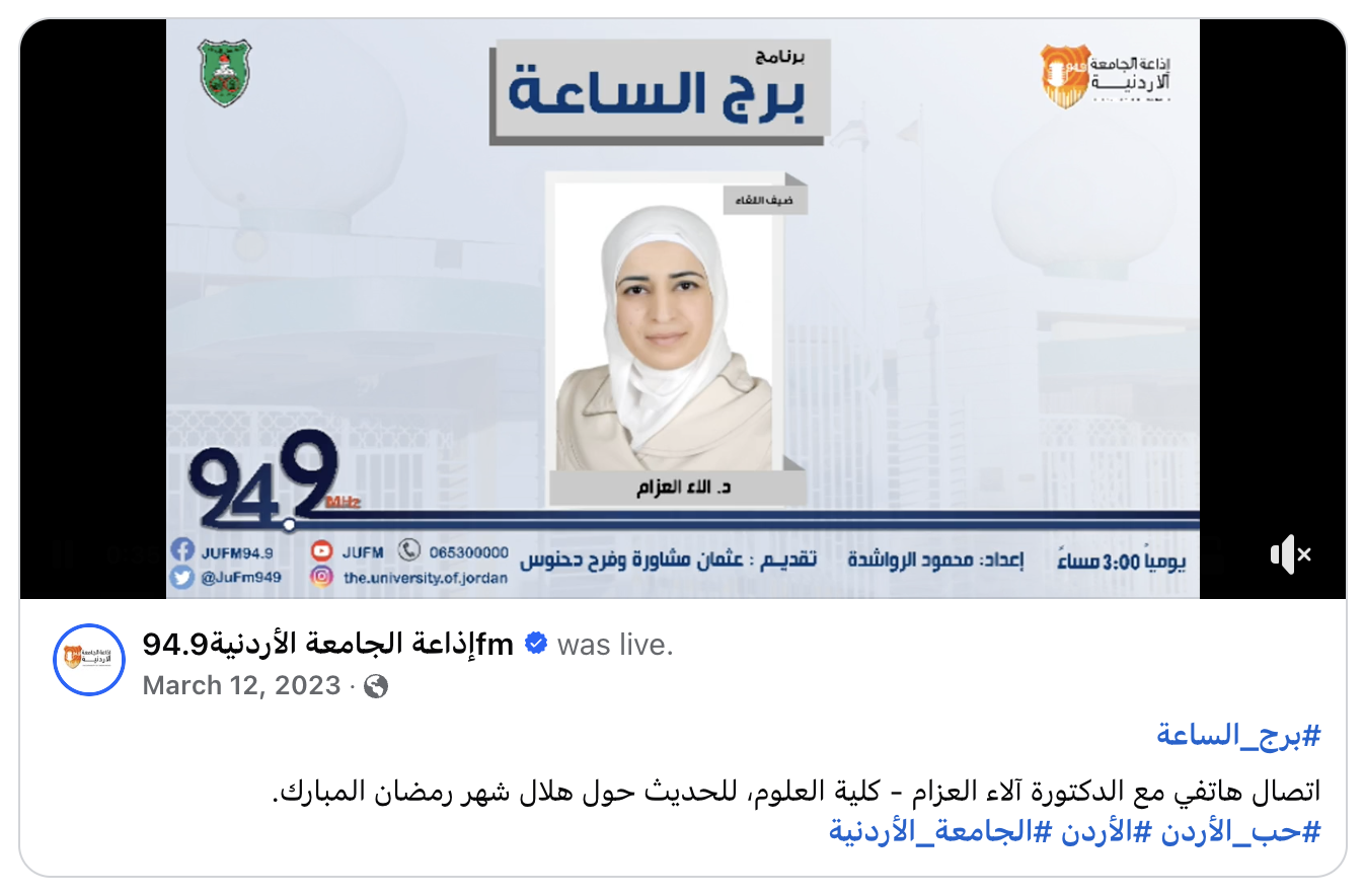 Dr. Ala’a Azzam Explains Lunar Eclipse During a University of Jordan Radio Interview