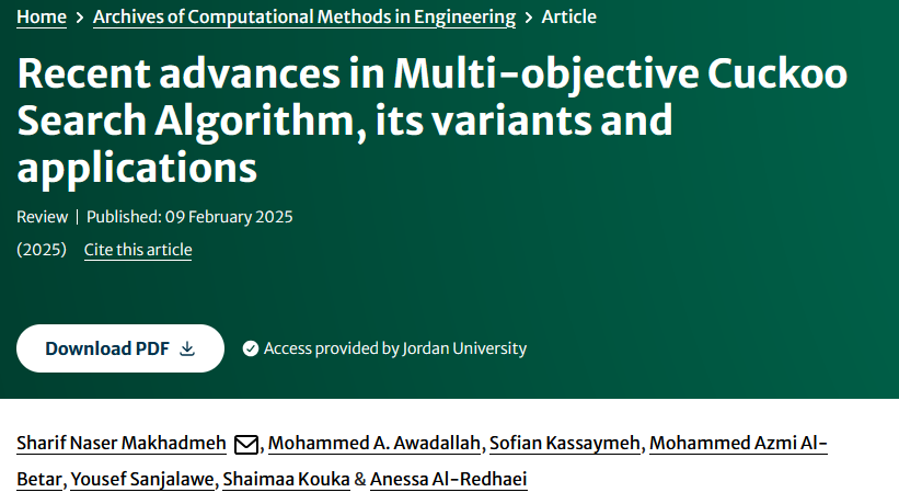 Prestigious Publication by Dr. Makhadmeh, Prof. Al-Betar, and Dr. Sanjalwe