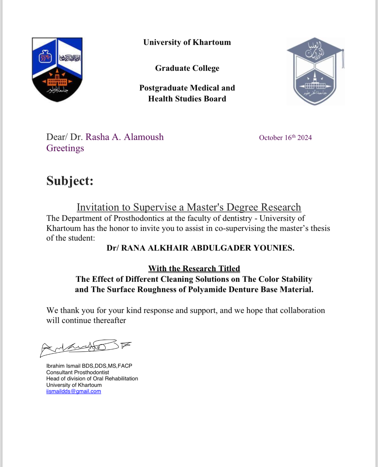 at the University of Khartoum, I am guiding her master’s thesis titled