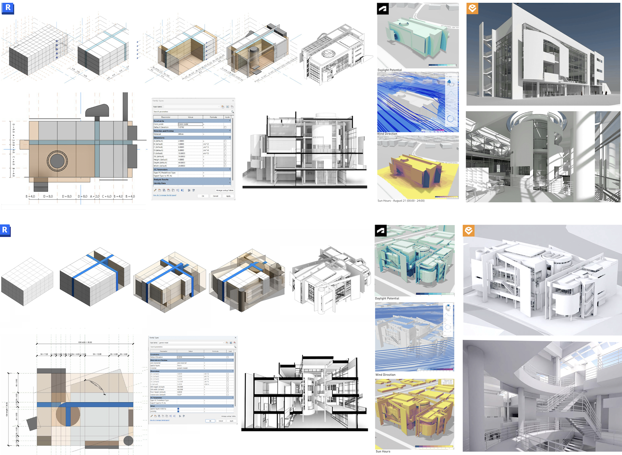 The D-BIM framework integrates diagrammatic reasoning, parametric modeling, and early performance evaluation within BIM environments. It structures the design process around three interrelated relationships—Dissection, Articulation, and Actualization—enabling students to move systematically from abstract concepts to coherent architectural forms. By embedding diagrams directly into BIM workflows, the method supports iterative exploration while maintaining formal logic and design intent.