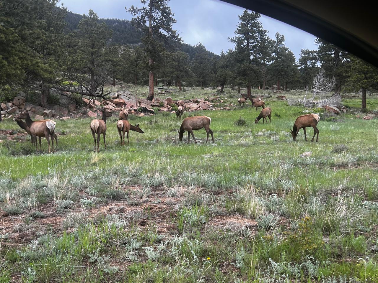 From Dr. Hebah Alkhasoneh's visit to the National Park in Colorado, USA. This photo features a group of deer in Colorado's National Park, peacefully grazing within a landscape of mixed grassland and forest. Their presence reflects the region’s land cover, which provides essential habitat and food sources for wildlife. The blend of open meadows and wooded areas supports a diverse ecosystem, illustrating how land cover directly influences animal distribution and behavior.