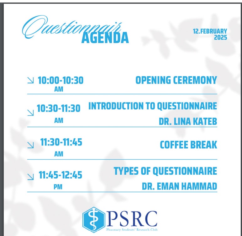 Dr. Eman Hammad delivered a session on types of questionnaires to pharmacy students as part of PSRC training to build future researchers’ skills.
