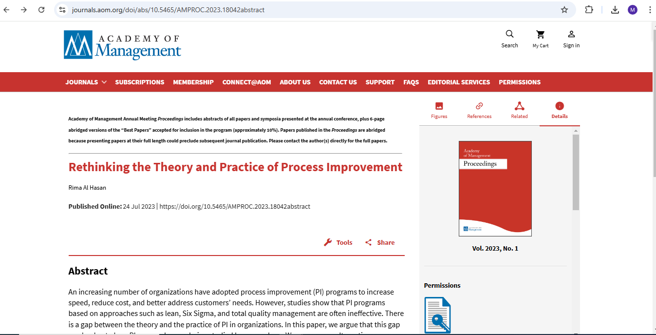 Dr. Rima published an article at the Academy of Management Journal. This journal is ranked as one of the top journals in the field of business and management. The Academy of Management journal is a world-class journal in the area of HRM and management. The article focuses on process improvement and how organizations can improve their various processes while drawing insights from both theoritical and practical perspectives.