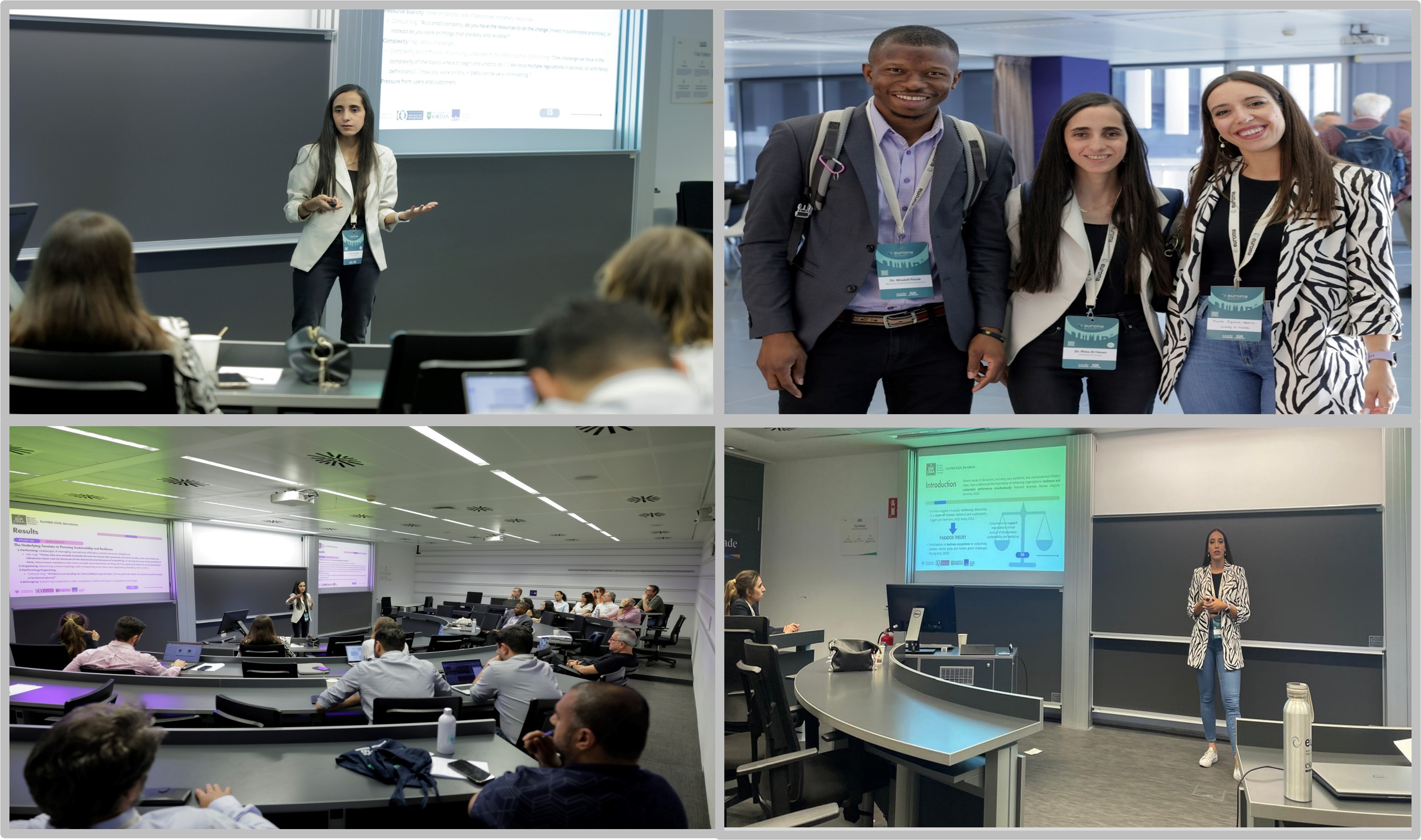 Members of the research group—Dr. Marta Riquelme, Dr. Rima Al Hasan, Dr. Ghadafi Razak, and Dr. Sadaf Aman—presented a paper titled "Navigating the Sustainability-Resilience Paradox in the Innovation Ecosystem" at the European Operations Management Association (EurOMA) Annual Conference, held in Barcelona, Spain, in July 2024.