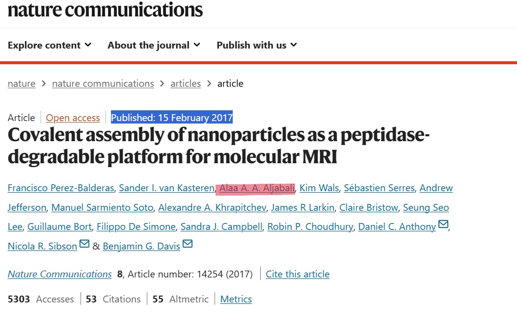 Publication of pioneering research on nanoparticles for molecular MRI in Nature Communications, demonstrating innovative nanotechnology for biomedical imaging.