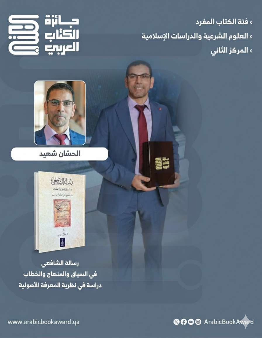 The researcher Al-Hassan Shahīd won second place in the Arabic Book Award (Sharia Sciences category) for his book, "Al-Shāfiʿī’s Risāla in Context, Methodology, and Discourse". This academic achievement underscores the importance of work in the field of Uṣūl al-Fiqh (Principles of Jurisprudence) and the renewal of its cognitive methodologies. This is central to the research objectives of the Maqasid Group, which focuses on advancing studies in the objectives of Sharia (Maqāṣid al-Sharīʿah).
