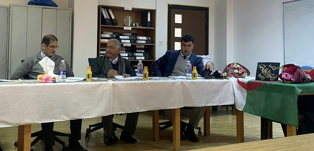 In a Ph.D. defense session for a former graduate student of Prof. Baha Alzalg. The Committee members are seated at a table with documents, indicating a research discussion