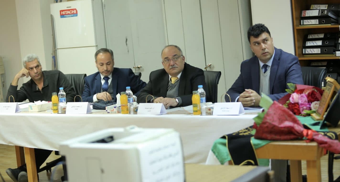 A Ph.D. defense session for a former graduate student features committee members seated at a table, highlighting a formal academic atmosphere