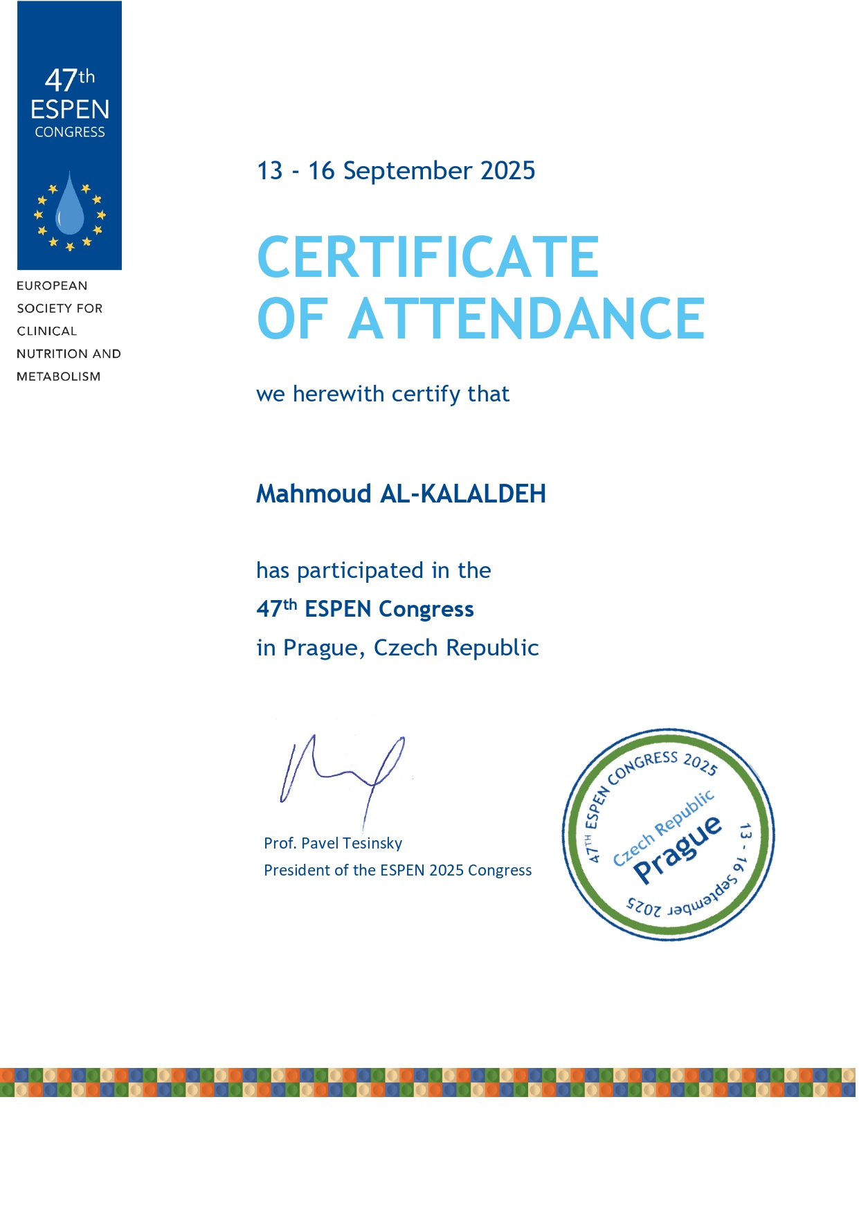 Participation in the 47th ESPEN Congress, Prague, Czech