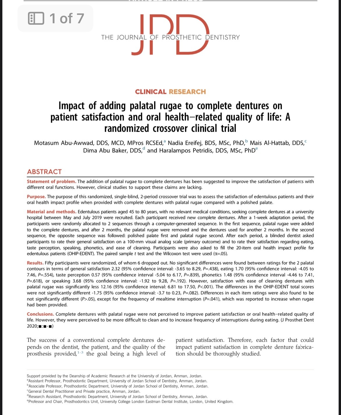 Dina Musa received her MSc degree in Prosthodontics from the University of Jordan School of Dentistry in 2022. Her thesis was supervised by Dr. Nadia Ereifej and together they published the paper shown above, based on Din's thesis.