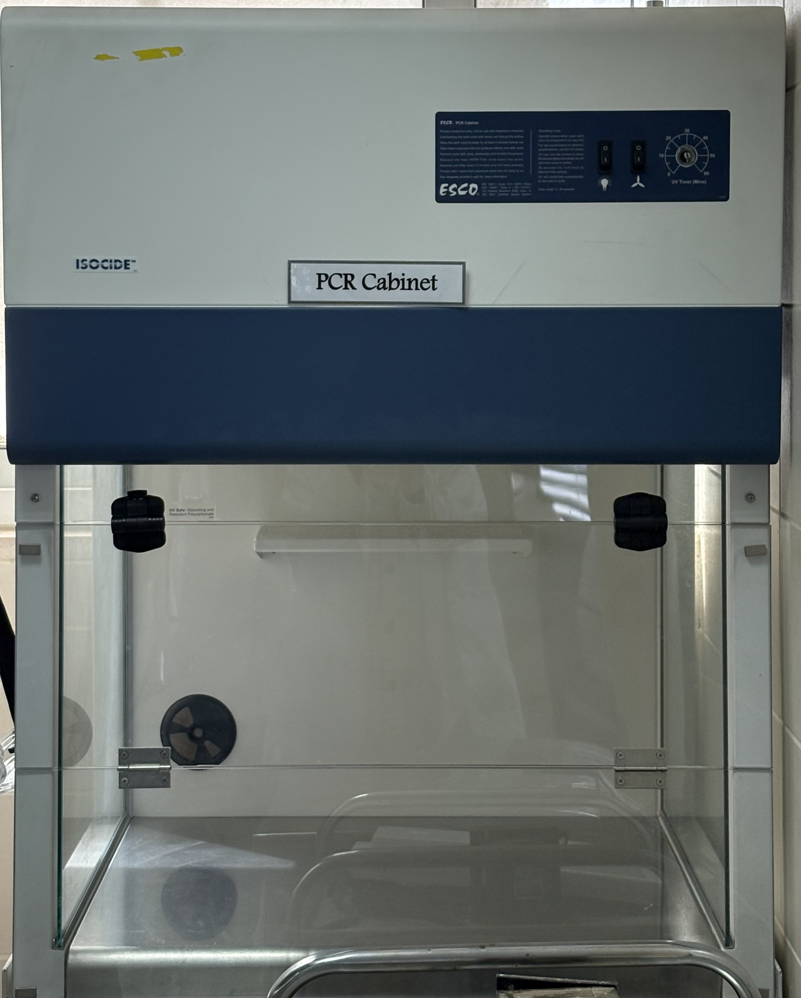 PCR Cabinet (ESCO): Primarily used for various extraction protocols. The laminar flow ensures a sterile environment, minimizing contamination risks during nucleic acid extraction and other sensitive procedures.