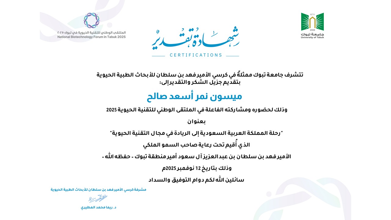 National Biotechnology Forum in Tabuk 2025. November, 12th 2025. Tabuk, Kingdom of Saudi Arabia.