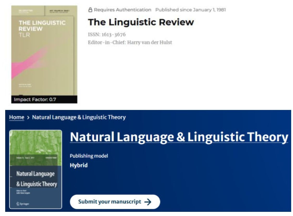 The Linguistic Review, published by Walter de Gruyter, is a Q1 Scopus journal, also indexed in Web of Science.