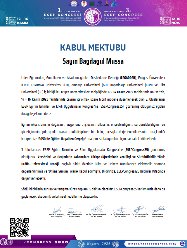 Paper accepted at the International Congress of Educational Sciences and Effective Practices (ESEP 2025)